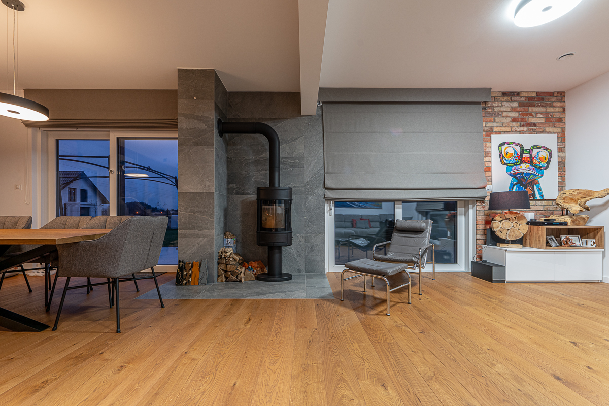 Podłoga dębowa w tym kolorze sprawia, że wnętrza nabierają szlachetności oraz naturalności.