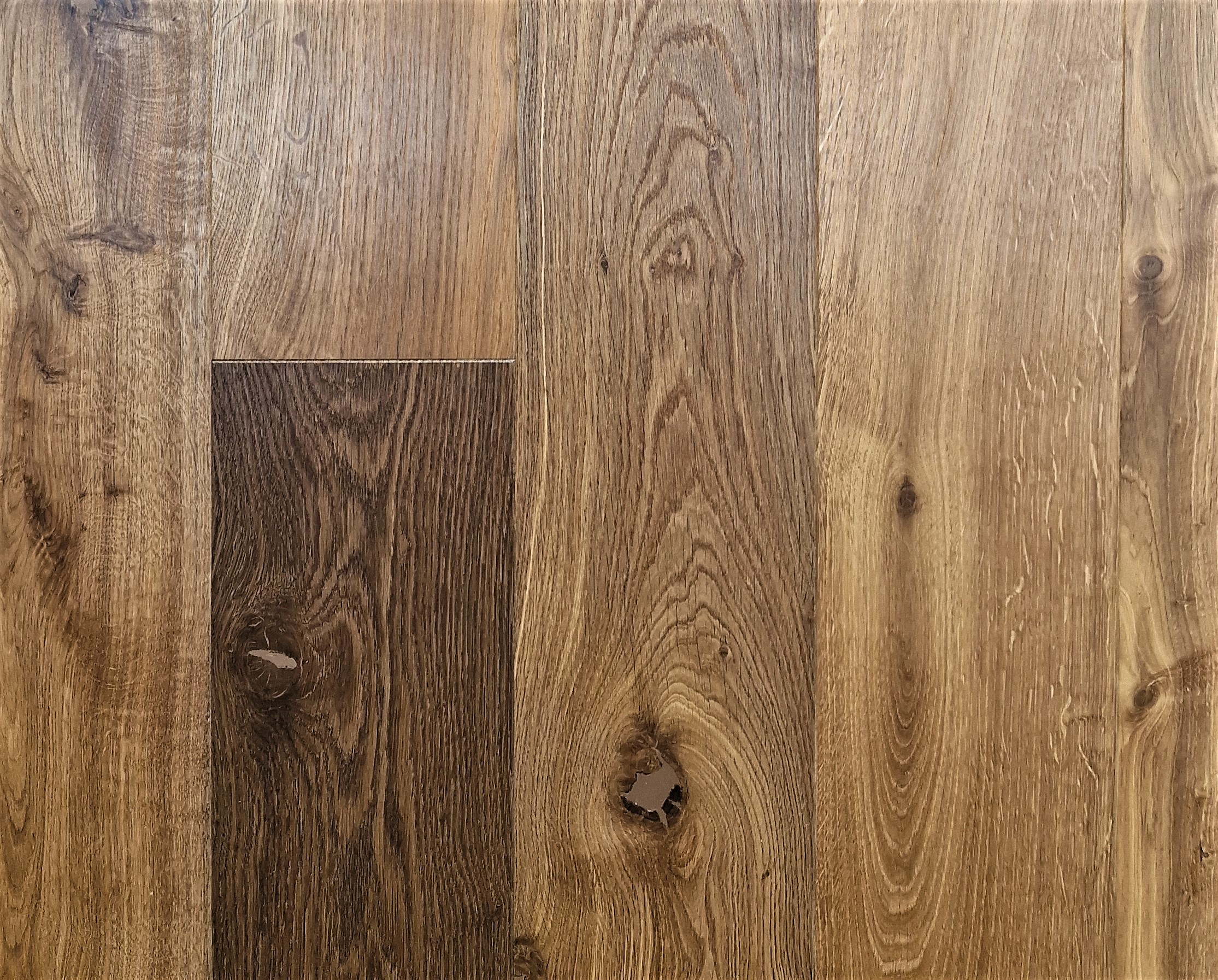 Podłoga o głębokiej, mocno charakterystycznej barwie, dzięki zastosowanemu procesowi wędzenia.